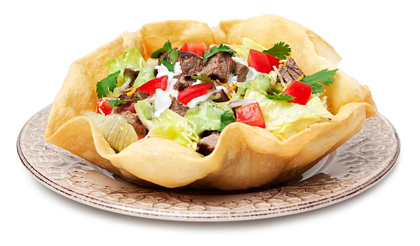 Here’s a delicious recipe, featuring a Fried Tortilla Bowl Salad with several meat and vegetarian varieties: