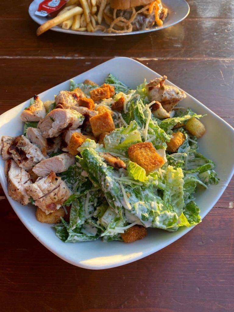 Smoky grilled chicken, crisp bacon, shaved Parmesan, and homemade Caesar dressing over romaine