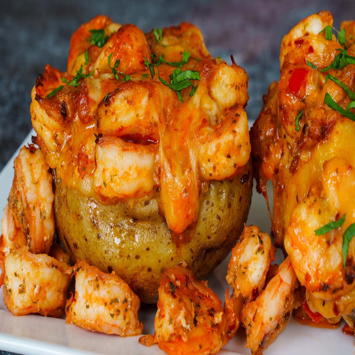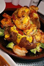Fluffy baked potatoes loaded with shrimp, crabmeat, broccoli, and creamy cheddar cheese sauce